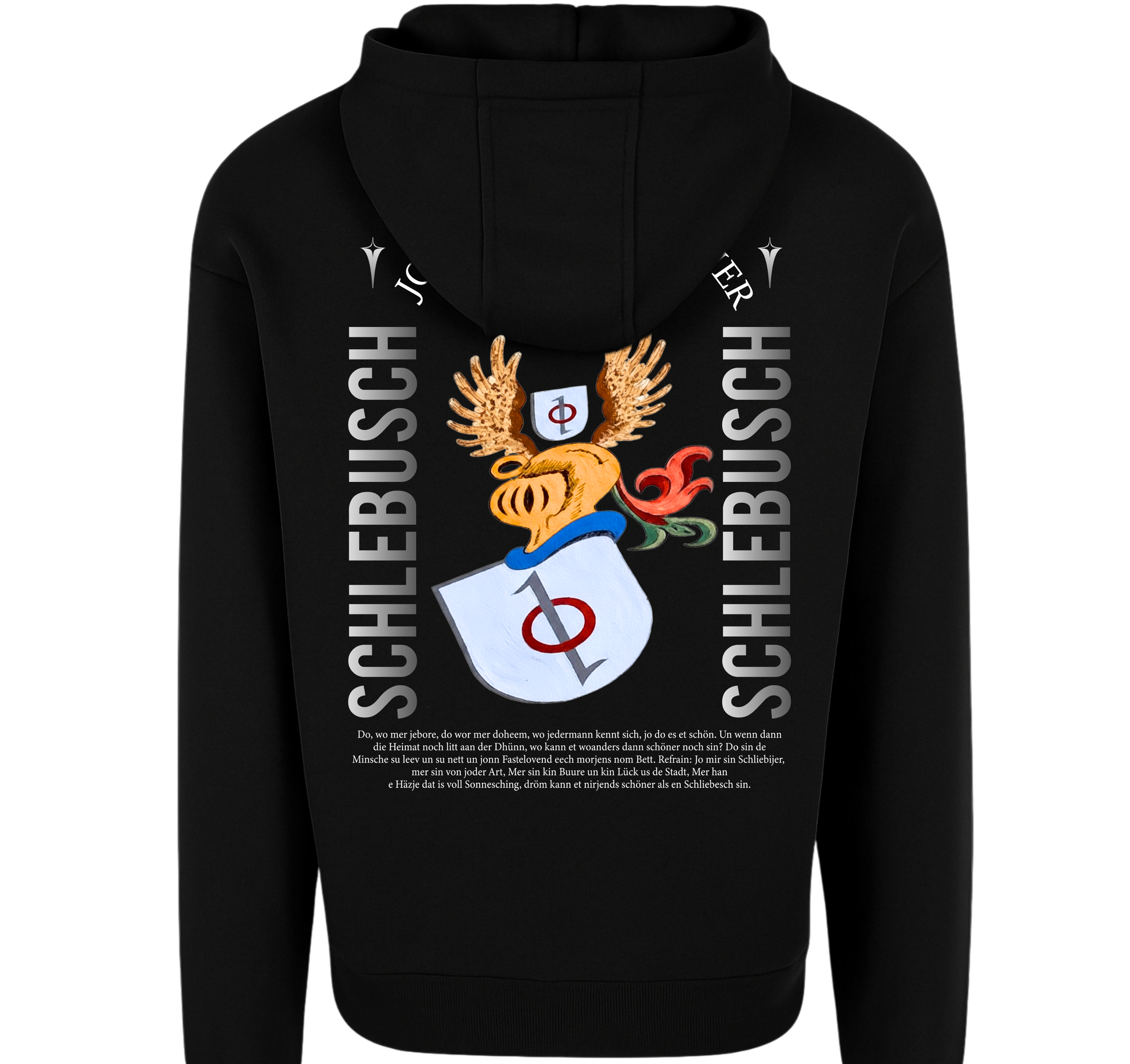 Mit großem Rückenprint: Wappen + Liedtext als Hommage an das Schlebusch-Lied